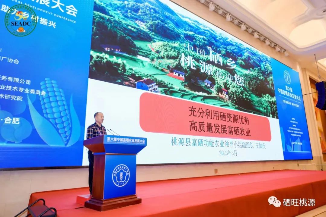 3月30日,第六屆中國富硒農(nóng)業(yè)發(fā)展大會在安徽省合肥市召開,原農(nóng)業(yè)部常務(wù)副部長、國務(wù)院參事室特聘研究員尹成杰,中國農(nóng)業(yè)技術(shù)推廣協(xié)會會長陳生斗,國家衛(wèi)健委地方病防治重點實驗室主任、施瓦茨獎獲得者王治倫,武漢輕工大學(xué)黨委副書記、國硒中心主任程水源,中國富硒農(nóng)業(yè)專業(yè)技術(shù)委員會主任朱珍華等領(lǐng)導(dǎo)和專家參會并就“打好富硒品牌,助力鄉(xiāng)村振興”作主旨演講,全國富硒產(chǎn)業(yè)重點發(fā)展地區(qū)黨政代表團(tuán)、協(xié)會企業(yè)共500余人參加了會議,會上還評選了100款富硒產(chǎn)品獲獎。桃源縣富硒功能農(nóng)業(yè)領(lǐng)導(dǎo)小組副組長王加慶帶隊參會參展。