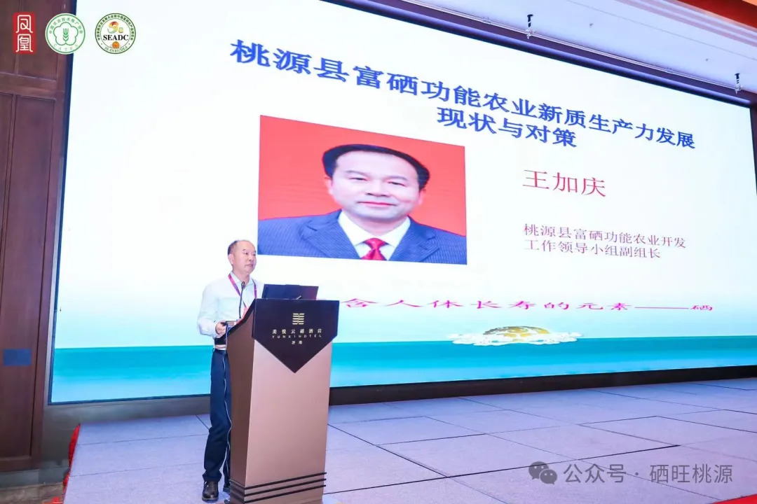 本次大會由中國農(nóng)業(yè)技術(shù)推廣協(xié)會主辦,原農(nóng)業(yè)部常務(wù)副部長、國務(wù)院參事室特約研究員尹成杰、中國農(nóng)業(yè)技術(shù)推廣協(xié)會會長陳生斗、山東省政府原副秘書長、省富硒農(nóng)產(chǎn)品協(xié)會顧問高洪波分別致辭,武漢輕工大學(xué)黨委副書記(正校級)、國硒中心主任程水源、世界施瓦茨獎獲得者、衛(wèi)健委微量元素與地方病重點實驗室主任王治倫等專家學(xué)者進行了學(xué)術(shù)報告,廣西、湖南、恩施、宜春等地區(qū)作了經(jīng)驗交流,桃源縣富硒功能農(nóng)業(yè)領(lǐng)導(dǎo)小組副組長王加慶在會上對桃源縣富硒功能農(nóng)業(yè)新質(zhì)生產(chǎn)力發(fā)展的經(jīng)驗和措施作了重點推介。